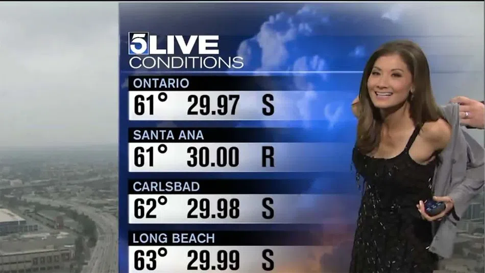 Weather reporter Libert Chan of KTLA was asked during her live weather report to put on a sweater. Apparently some viewers thought that her dress was inappropriate. The internet is divided on this one...