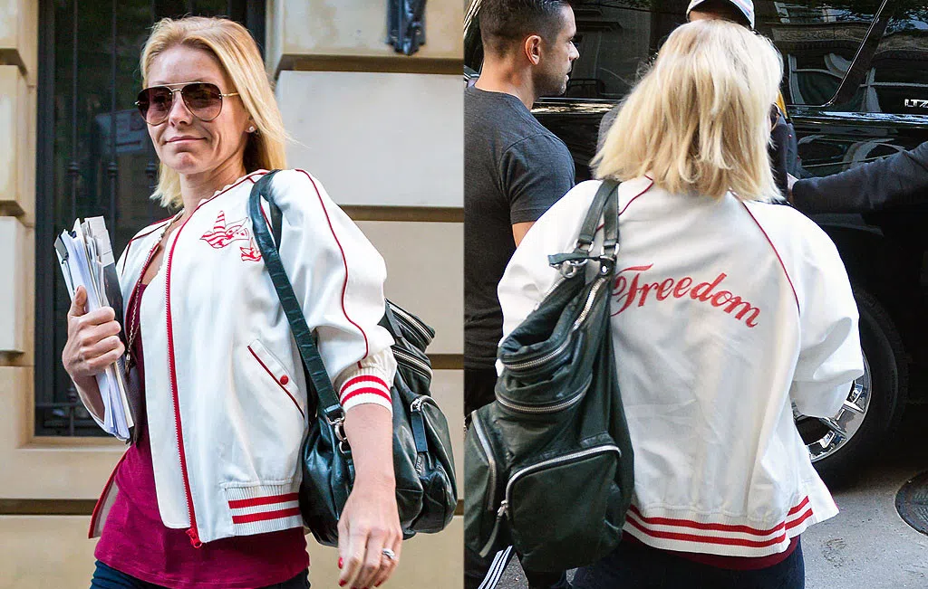 Kelly Ripa is sending subliminal messages all over the place. She was seen leaving her apartment wearing a jacket with “Freedom” on the back. This comes as one of her latest jabs at the ne...