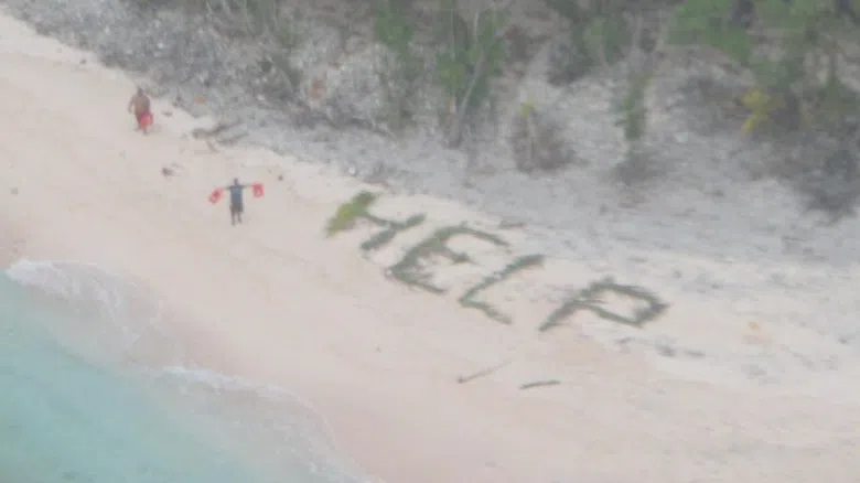 The U.S. Navy and Coast Guard rescued three mariners who were lost on a remote island in the Pacific and used palm fronds to spell out “help.”