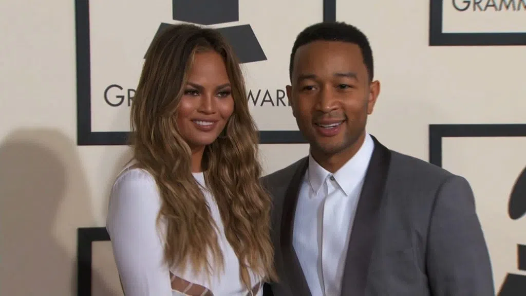 Chrissy Teigen and John Legend on the red carpet at the 57th Annual GRAMMY Awards in Los Angeles on Sunday, February 8, 2015.