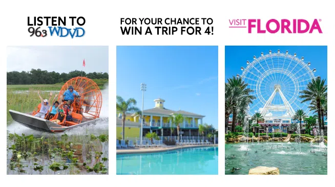 Be listening to 96.3 WDVD beginning Monday, March 2 for your chance to win a family vacation for four to Orlando, Florida!