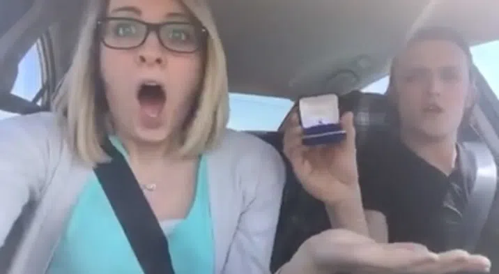 Two people in New York got engaged last month while they were on a road trip. The guy proposed while they were actually driving in the car, with Taylor Swift playing on the radio. (The song was “Love Story”, and he sang along and changed the lyrics to “Marry Me Greta.” Then he pulled out a ring and she said yes.)