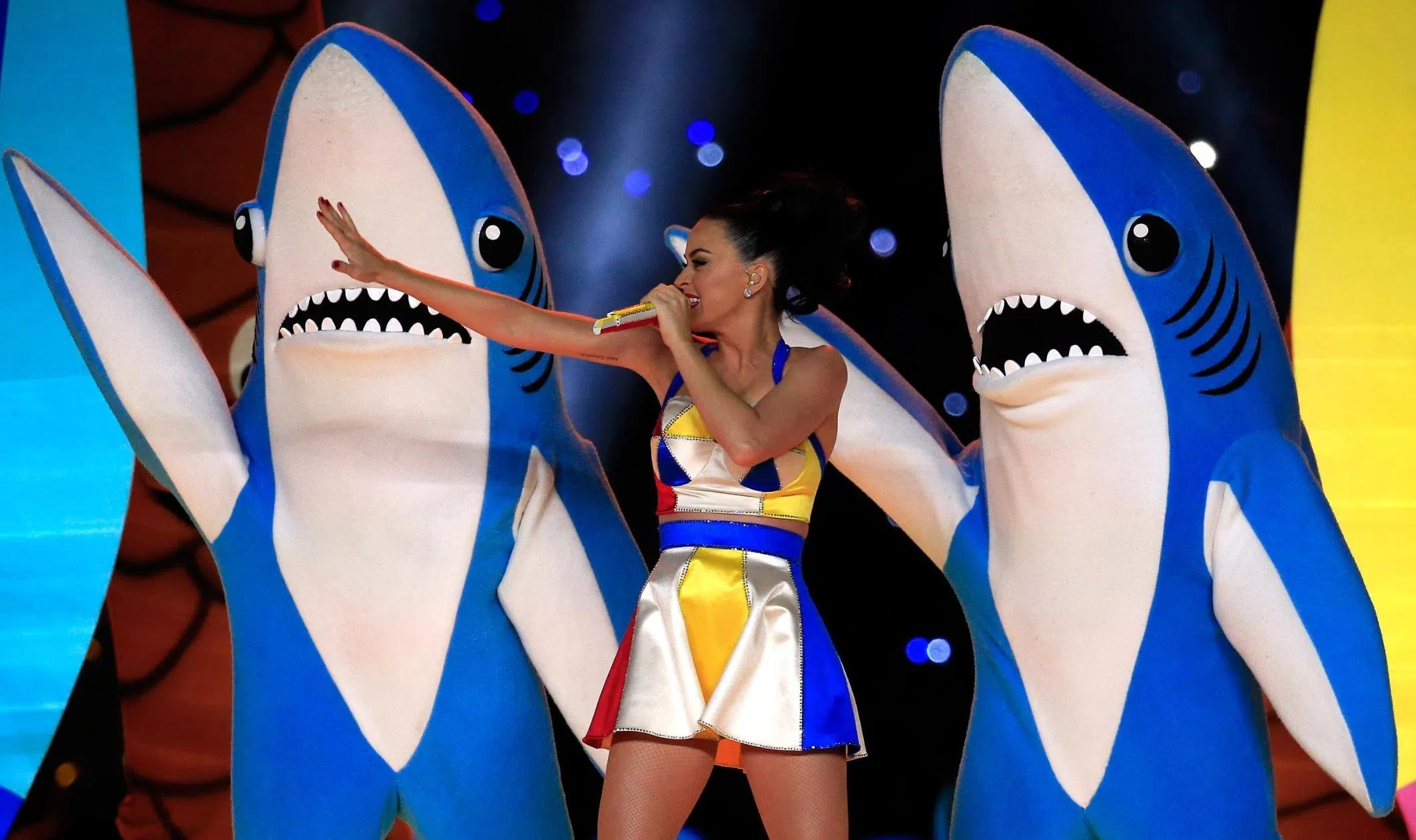 **This image is for use with this specific article only.** Left Shark flailed and spun around and seemed at times to be making it up as he went along.