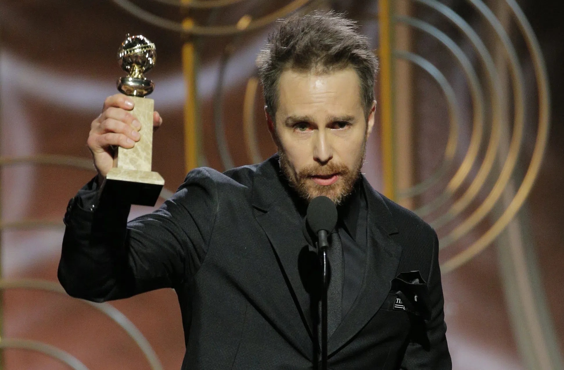 Sam Rockwell wins Best Performance by an Actor in a Supporting Role in Any Motion Picture at the 75th Annual Golden Globe Awards held at the Beverly Hilton Hotel on January 7, 2018.