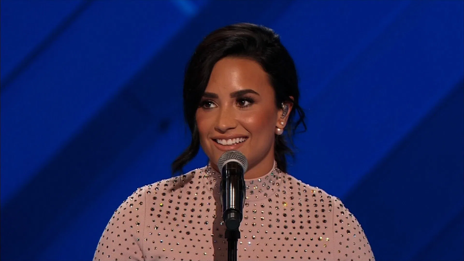 Demi Lovato speaks at the Democratic National Convention in Philadelphia, Pennsylvania on Monday, July 25, 2016.