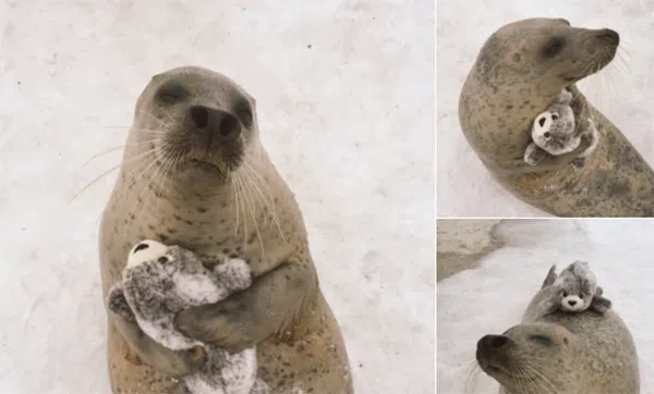Check out this seal at Mombetsu Land in Japan. The staff got him a plush toy that looks just like him and he can’t stop hugging it! MORE