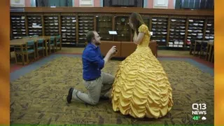 An Iowa man recreated a famous scene from his girlfriend’s favorite movie, Beauty and the Beast, to ask her to marry him. He even made her a yellow ball gown.