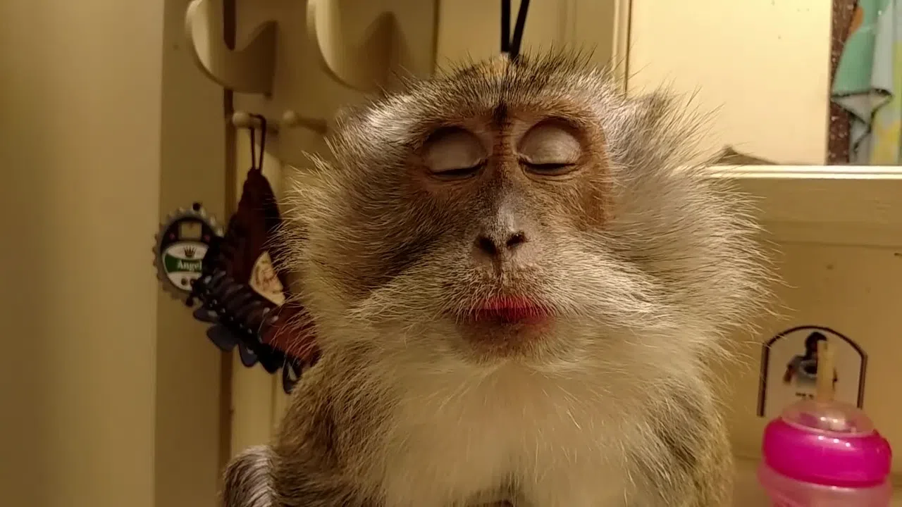 Angel the macaque loves being the center of attention. She demands the highest standards of care and affection from her family, and enjoys being dressed up and getting her makeup done. Credit: YouTube...