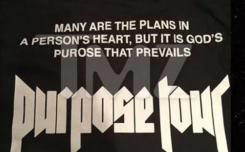 One of the t-shirts sold inside the concert had white lettering that read, “Many Are The Plans In A Person’s Heart, But It Is God’s Purose that Prevails.” Ooops. TMZ found out ...