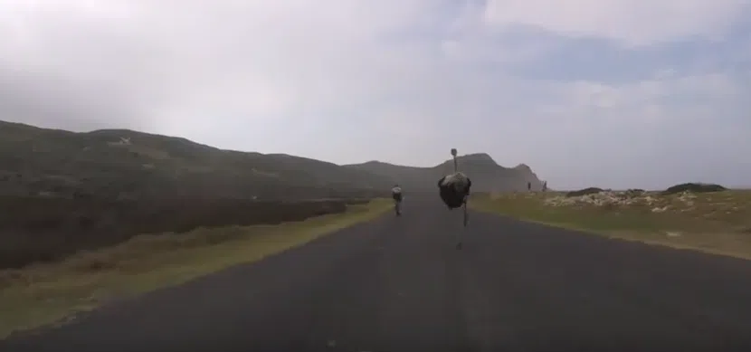 An Ostrich Races Bicyclists At 30MPH