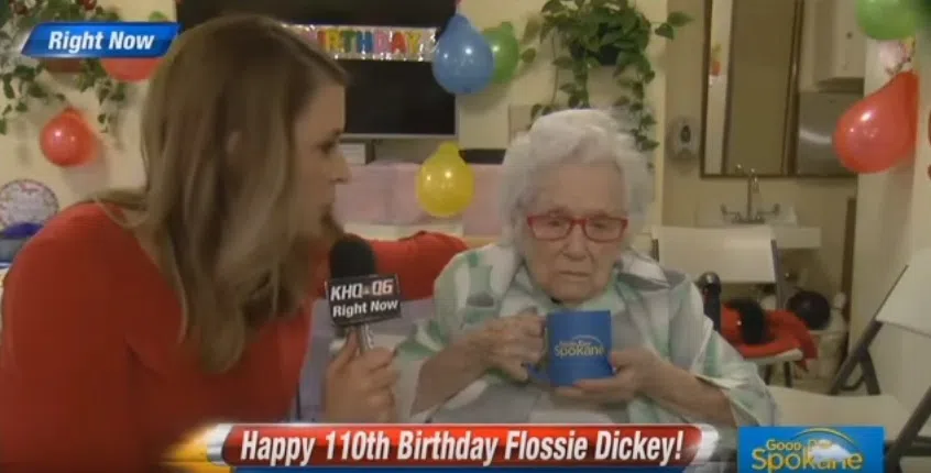 https://youtu.be/OAUn3A4QtaI This is the best news interview we have ever seen! Good Day Spokane anchor Nichole Mischke interviewed 110-Year-Old Flossie Dickey on her birthday. What did we get out of ...