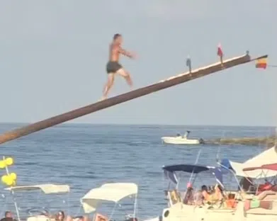 Contestants clamber up a greasy pole as the traditional Gostra Festival pole climbing competition takes place in St. Julian’s, Malta.