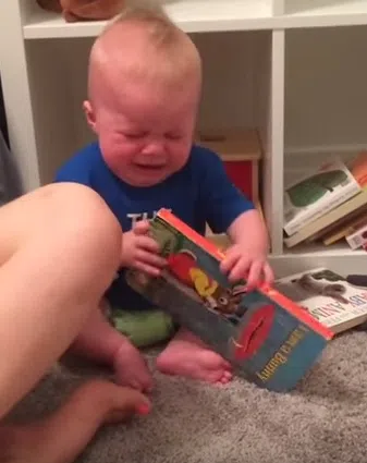 https://youtu.be/AIEeakeXvMM This baby knows no greater sadness than the end of a book.