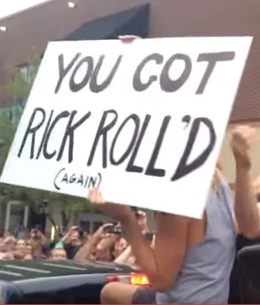 Dave Grohl and the Foo Fighters performed an in-person version of the joke Friday by blasting the '80s song at Westboro Baptist Church protesters from a truck outside of Sprint Center in Missouri. The...