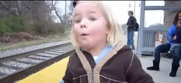 42 seconds of pure cute: a little girl sees a train for the first time