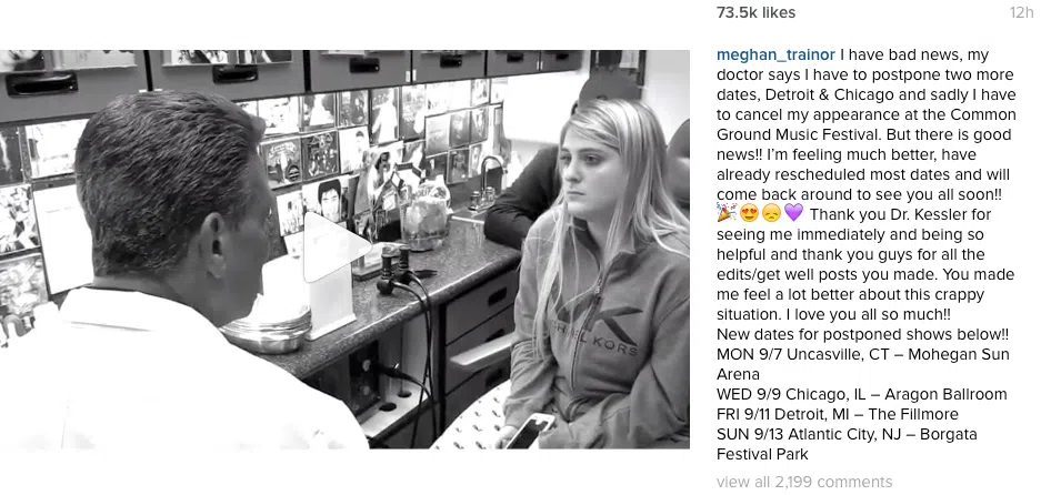 Meghan Trainor had to cancel some shows on her tour due to illness, one was here in Detroit. She had been scheduled to perform at The Fillmore on Thursday. The show has been rescheduled for Friday, Se...